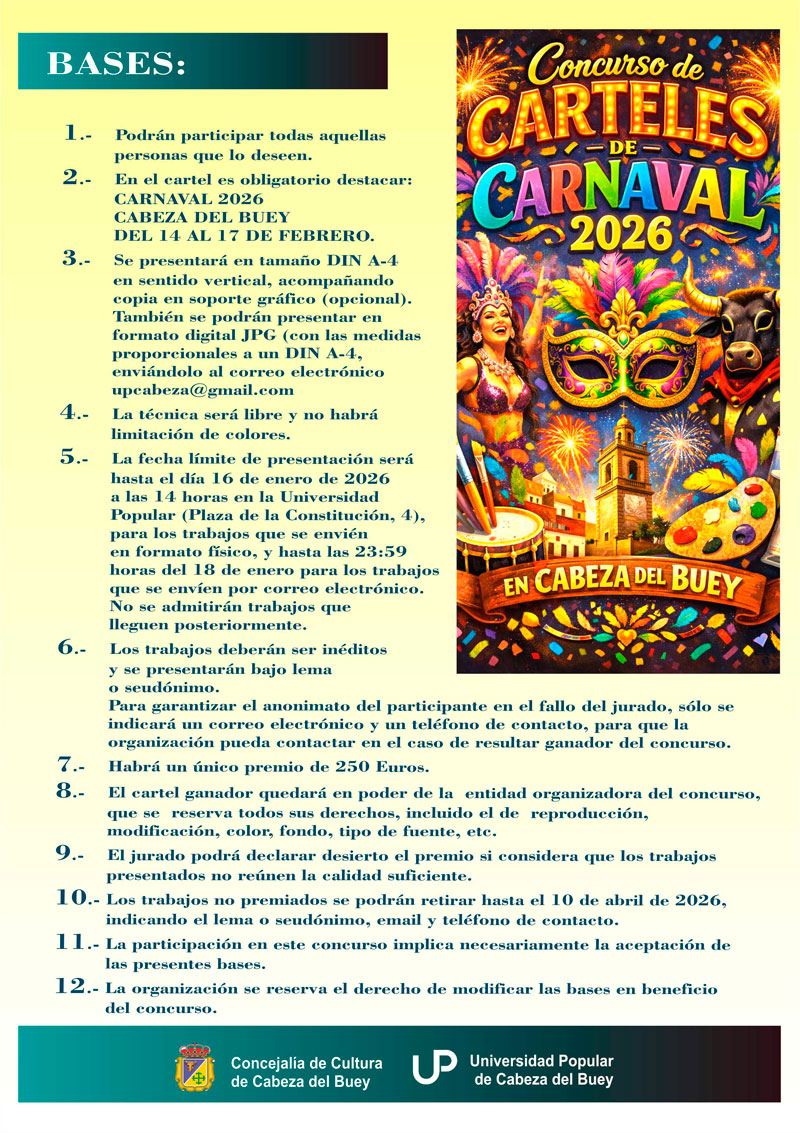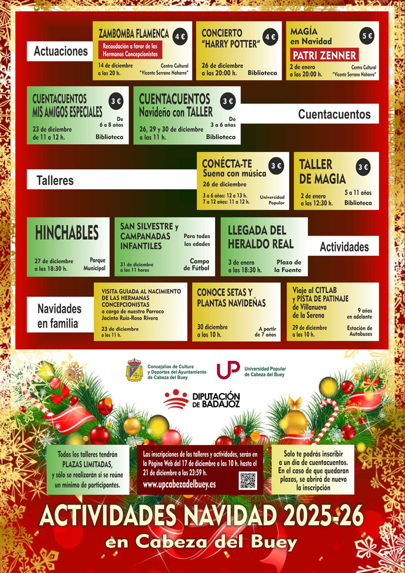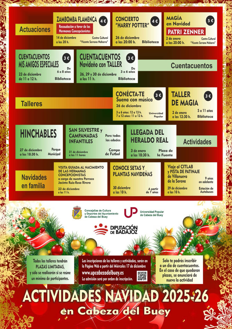 Consulta las próximas actuaciones de la Banda Municipal de Música de Cabeza del Buey y anímate a inscribirte en ella.